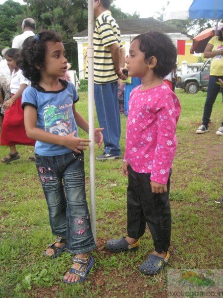 Ashley and his Amigos the music band entertained the crowd with their music. The main features however for me was the games of Katodieo (blind fold coconut breaking contest), ‘Koindabal’ (hitting one stick with another), ‘Godde’ (marbles) and ‘Gontamni’ (hopscotch). Apart from these there was entertainment in the form of Konkani songs, cultural dances, performed by the people.